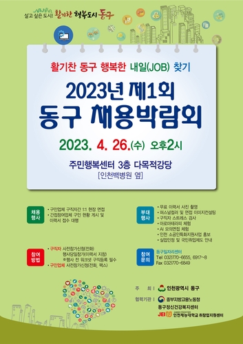 인천 동구가 오는 26일 오후 2시 주민행복센터에서 2023년 제1회 채용 박람회를 개최한다.