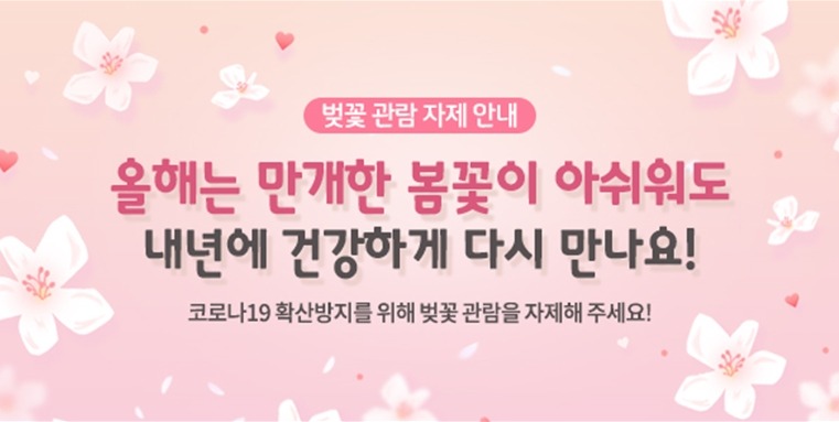 이밖에도 도 청사 인근 도로에 봄꽃 관람 자제 등 물리적 거리두기 캠페인 동참을 호소하는 현수막과 입간판을 설치했다.