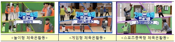 신체활동 프로그램은 콘 축구, 농구 패스 게임, 배려민턴, 풍선 배구, 슬라이딩 피구, 펀치 야구 등 148종이며 주요 콘텐츠는 서킷트레이닝, 스태킹&저글링, 킨볼, 치어리딩, 생존수영, 365+체육온활동 등이다.