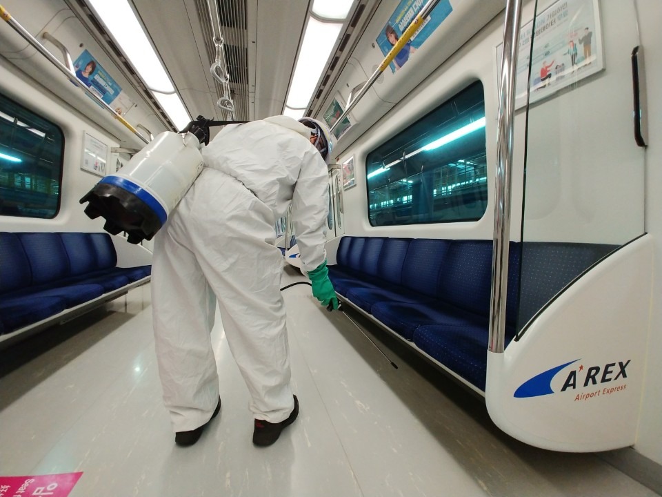 현재 공항철도는 매일 1회 차내 방역소독을 하고 있으며, 서울역 회차선에서도 수시로 실시한다.