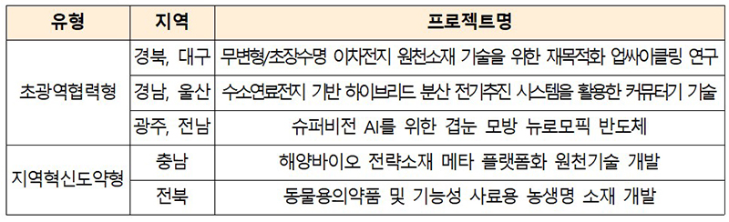 해당지역은 경북·대구(이차전지), 경남·울산(첨단모빌리티), 광주·전남(인공지능), 충남, 전북(첨단바이오) 등 5개 프로젝트다.