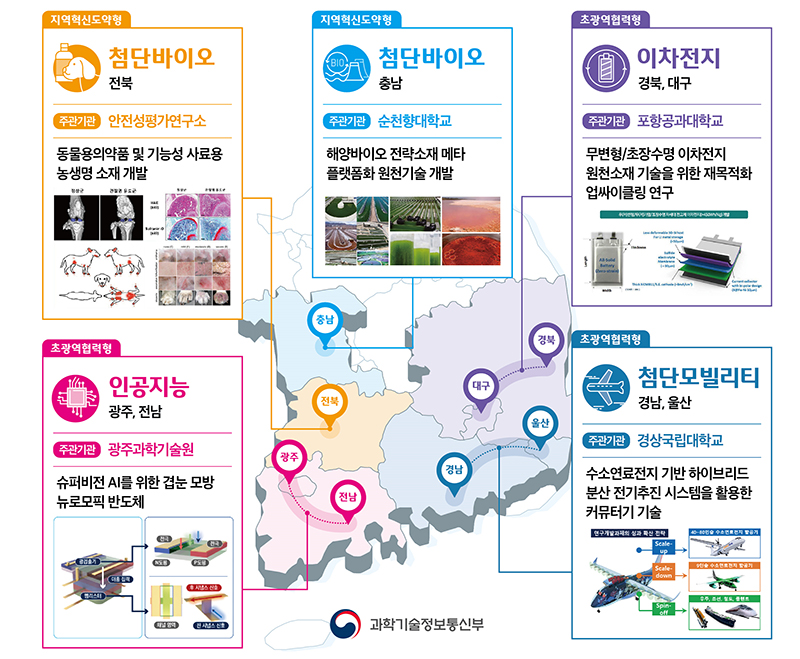 과학기술정보통신부가 지역의 중장기 혁신에 필요한 원천기술 개발 및 지역산업·경제로의 확산을 촉진하는 ‘지역혁신 메가프로젝트 사업’을 선정했다.