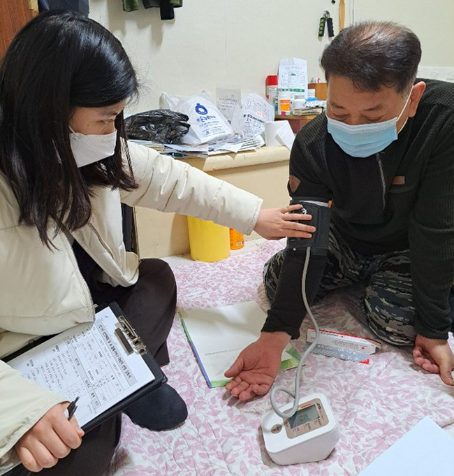 각각의 역할에 따라 간호직 공무원은 혈압, 혈당 측정 등으로 대상자의 건강 상태를 확인하고, 의료정보를 제공한다. 상담 과정에서 건강위험 신호를 감지하면 병원을 연계한다.