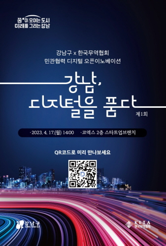 꿈이 모이는 도시, 미래를 그리는 서울 강남구가 디지털 민·관 협력 오픈 이노베이션 행사인 '제1회 강남, 디지털을 품다'를 오는 17일 오후 2시 코엑스 스타트업브랜치에서 개최한다.
