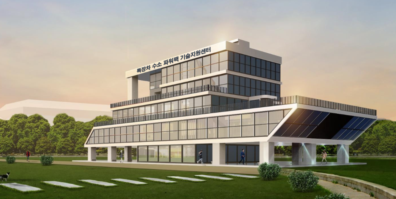 「특장차 수소 파워팩 기술지원센터」는 2025년부터 운영을 목표로 하여 대지면적 16,500㎡, 건축 연면적 2,300㎡, 장비 10종, 총사업비 261억원 규모로 충주시 주덕읍 화곡리 1256(충주 기업도시)에 구축될 예정이다.