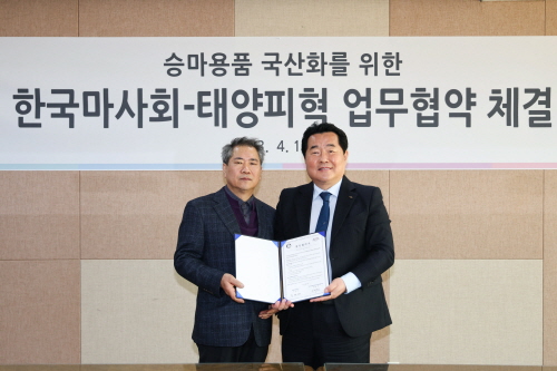 한국마사회는 지난 12일 승마용품 국산화를 지원하기 위해 35년간 승마용품을 제작해온 태양피혁과 업무협약을 체결했다.
