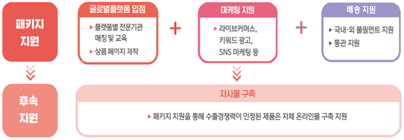 아울러 패키지 지원을 통해 수출경쟁력이 인정된 기업에 대해서는 다음해에 해외향 자체 온라인 쇼핑몰(자사몰) 구축을 도울 예정이다.