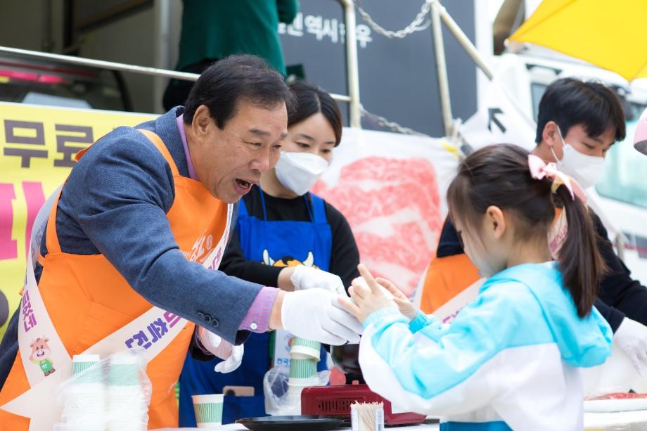 이날 행사에서 최시장은 손수 한우를 구워 방문객들에게 시식을 권유하는 것은 물론, 시민 등 소비자들과 소통하며 ‘한우 소비촉진 캠페인’을 벌였다.