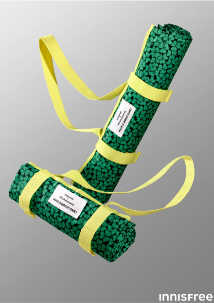이러한 취지에서 2030에게 인기 있는 패브릭 디자인 브랜드인 키티버니포니와 함께 특별한 콜라보를 진행했다. 폐플라스틱을 재활용한 천으로 만든 피크닉 매트를 출시하여 나들이 가기에 좋은 4월에 맞춰 활용할 수 있도록 준비했다. 또한 이니스프리의 NEW 컬러인 액티브 그린과 키티버니포니의 클로버 패턴을 담아 패셔너블함은 물론 방수 기능과 휴대성까지 갖췄다.