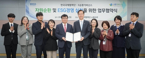 코이카는 17일 경기도 성남시 코이카 본부에서 환경부 인가 비영리 공익법인인 E-순환거버넌스와 '자원순환 및 ESG경영 실천을 위한 업무협약(MOU)'을 체결했다.