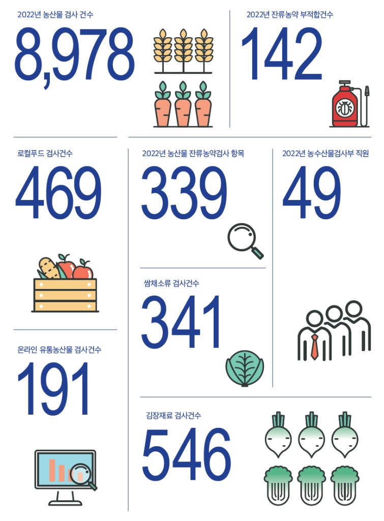 경기도는 매년 농산물 잔류농약 주요 자료를 엮어서 연도별, 월별, 품목별 잔류농약 검출 현황 및 부적합 내역 등 농산물 안전관리 현황을 한눈에 알아볼 수 있도록 통계 연보를 발간하고 있으며, 경기도 누리집에서 자료를 내려받을 수 있다.