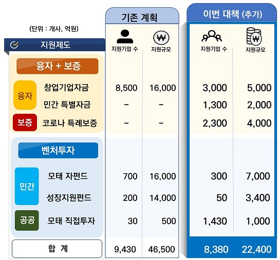 이번 대책의 핵심은 스타트업 전용자금을 1조 1000억원 추가 공급하고 벤처투자시장에서 1조 1000억원 규모의 투자가 추가로 유발될 수 있도록 하는 것이다.