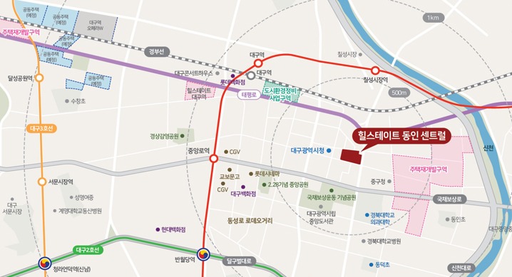 특히 단지 인근에 위치한 태평로를 중심으로 신규 아파트들이 대거 공급되면서 일대가 신흥주거타운으로 탈바꿈하고 있다. 태평로 일대에는 1만2,000여 세대의 신규 단지가 분양했거나 분양을 앞두고 있다. 이러한 신흥주거타운에서 힐스테이트 동인 센트럴은 49층 고층 단지로 조성돼 상징성이 높을 것으로 수요자들의 기대를 모으고 있다.