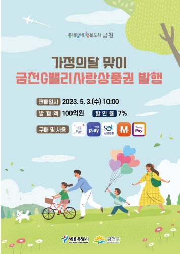 서울 금천구는 5월 3일 가정의달을 맞아 지역 내 소비 촉진과 소상공인 매출 증대를 위해 금천G밸리사랑상품권을 발행한다.