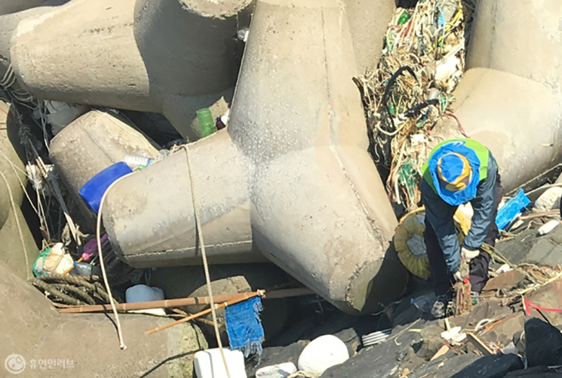 해수부-해군-해경 합동 수거활동을 통해 테트라포드와 같이 접근이 어려운 곳에 방치된 해양쓰레기도 수거해 나간다.