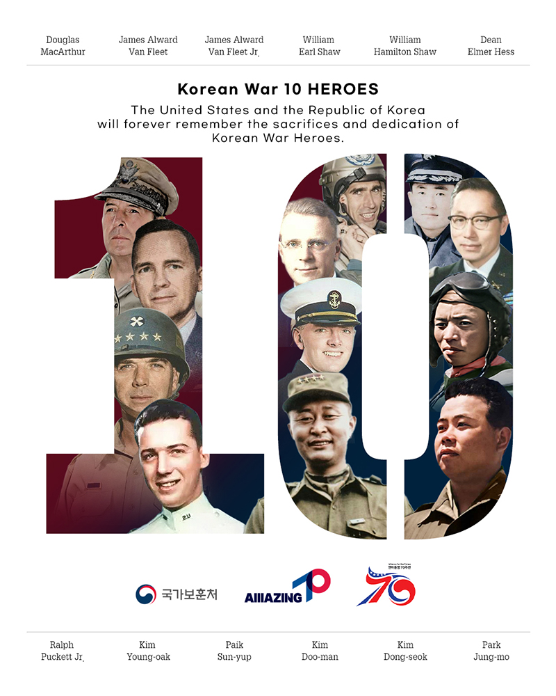 10대 영웅은 6·25전쟁에서 한국의 자유민주주의를 수호하고 70년을 이어온 한미동맹의 역사에 큰 역할을 한 인물을 중심으로 선정됐다.