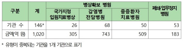 정부가 코로나19 대응 과정에서 의료기관이 입은 손실을 보상하기 위해 146개 의료기관에 1020억원을 지급한다고 밝혔다.