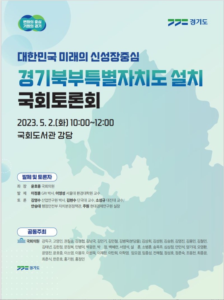 민선8기 경기도의 핵심 공약인 ‘경기북부특별자치도 설치’ 추진을 위한 공론의 장이 국회에서 열린다.