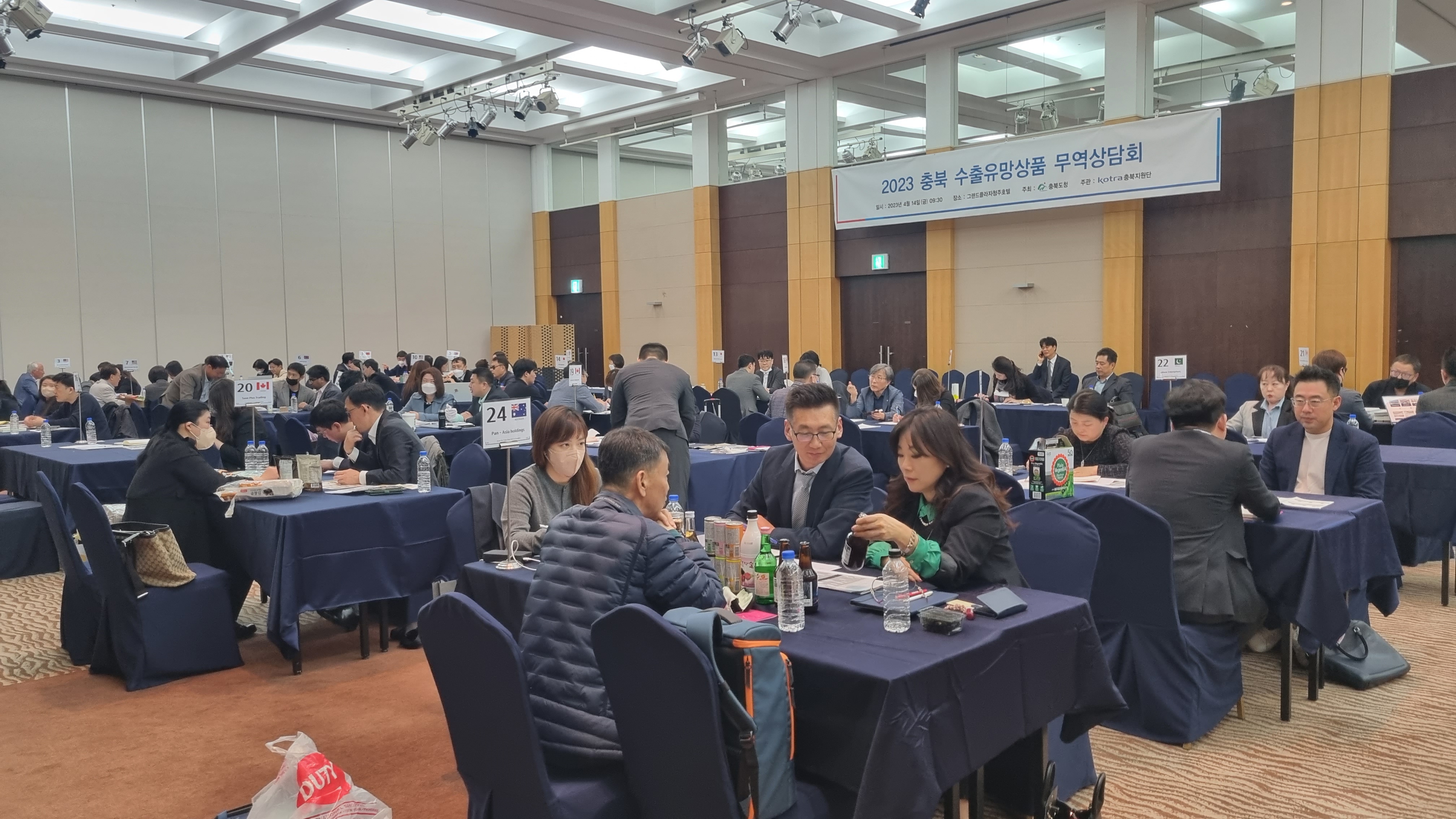 충북도와 KOTRA충북지원단은 지난 14일 그랜드플라자 청주호텔에서 도내 중소·중견기업과 해외바이어가 직접 만나는 ‘2023 충북 수출유망상품 종합무역상담회’를 개최했다.