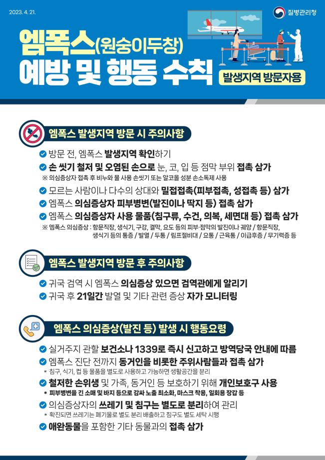 엠폭스는 바이러스 감염에 의한 급성 발열, 발진성 질환으로 2022년 5월부터 세계 각국으로 확산했다.