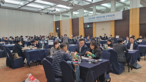 충북도와 KOTRA충북지원단은 지난 14일 그랜드플라자 청주호텔에서 도내 중소·중견기업과 해외바이어가 직접 만나는 '2023 충북 수출유망상품 종합무역상담회'를 개최했다.