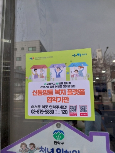 관악구(구청장 박준희)는 지난해 12월부터 한국공인중개사협회 관악구지회(지회장 은춘선)와 위기가구 발굴 지원 업무 협약을 체결하고 전입신고 이전 실거주 순간부터 지역사회 복지 자원과 연결, 복지 사각지대 발생을 사전 예방하는 '신통방통 복지플랫폼' 사업을 추진해 오고 있다.