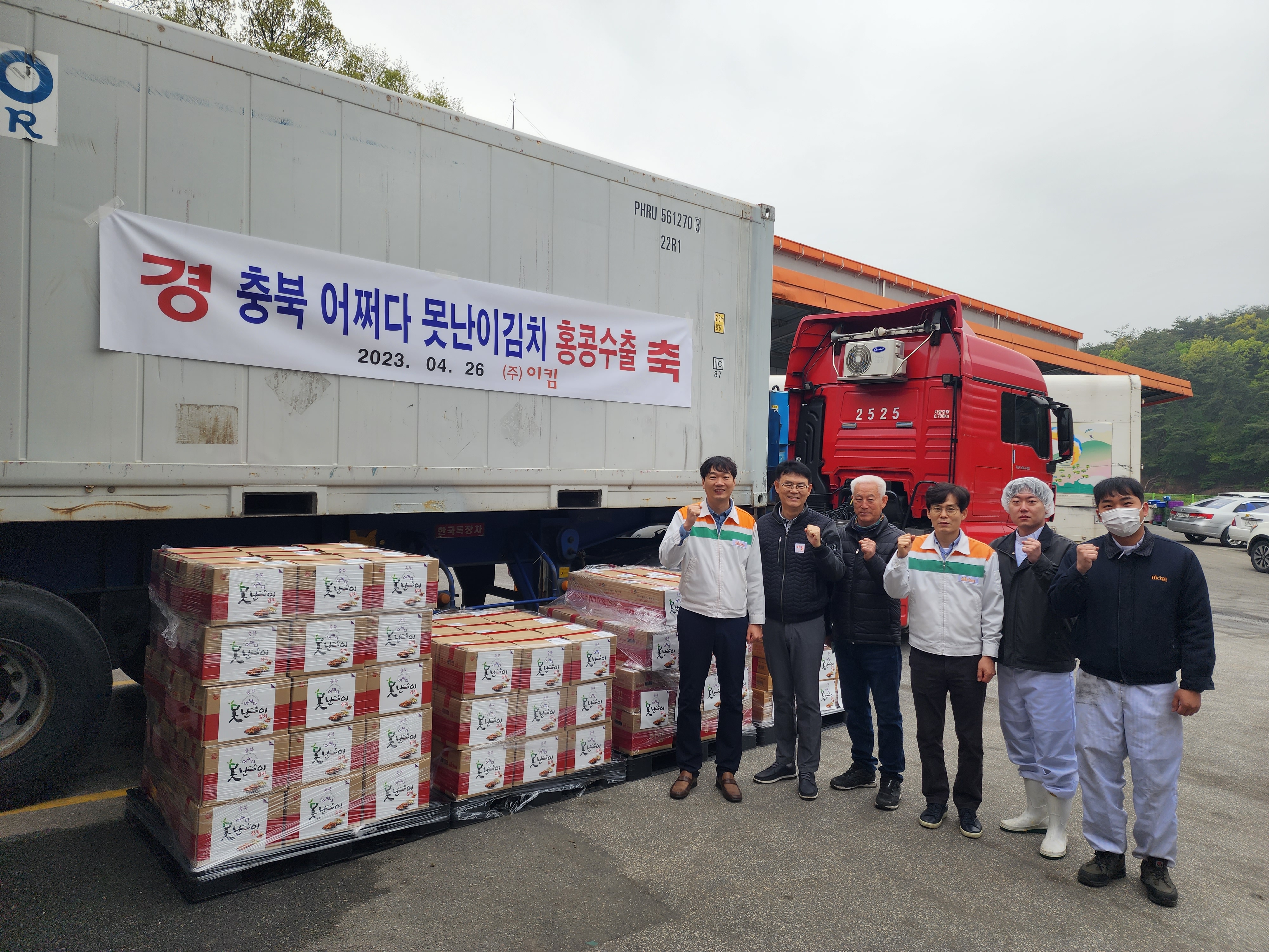 충청북도가 시작한 ‘어쩌다 못난이 김치*’가 홍콩 현지인의 입맛을 사로잡기 위해 4월 26일(수) 1톤 수출 선적식을 했다.