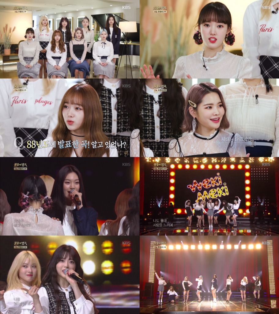 지난 11일 방송된 KBS2 ‘불후의 명곡 – 전설을 노래하다’ 전설 ‘주현미’ 편에는 위키미키(지수연, 엘리, 최유정, 김도연, 세이, 루아, 리나, 루시)가 출연했다. 다섯 번째로 경합에 오른 위키미키는 트로트의 여왕 주현미의 ‘신사동 그사람’의 신나는 댄스 버전으로 시선을 사로잡았다.