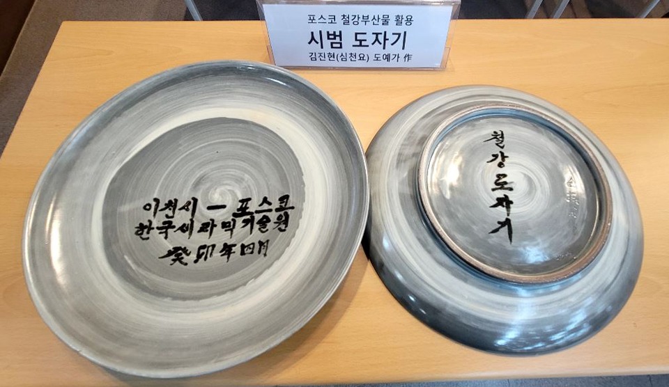 이날 행사에서 이천 심천요 김진현 도예가는 포스코의 철강부산물을 함유한 점토로 시범 제작한 도자기를 공개했다. 이 도자기는 포스코의 수재슬래그를 10% 함유하고 산화철을 안료로 사용한 도자기로, 철강부산물을 도자기 생산에 활용할 수 있는 가능성을 보여주었다.
