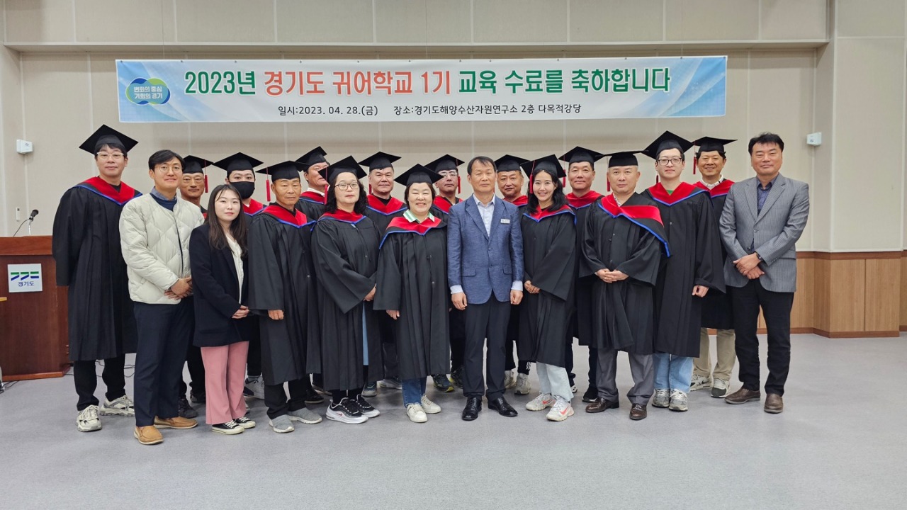 수도권에서는 유일한 미래 어업인을 위한 교육기관인 경기도 귀어(歸漁)학교가 28일 해양수산자원연구소 다목적강당에서 2023년 1기 수료식을 진행했다.