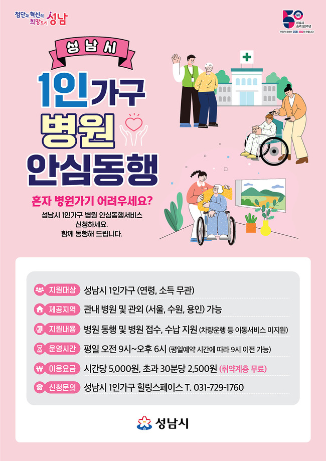 병원 안심 동행은 나이나 소득 관계없이 성남시에 사는 1인 가구가 이용 대상이다.