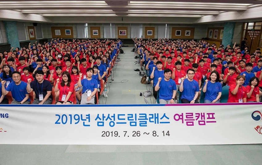 삼성전자는 26일부터 다음달 14일까지 전국 5개 대학에서 읍·면·도서 지역 691개 중학교의 학생 1,543명이 참가하는 '2019 삼성드림클래스 여름캠프'를 운영한다.