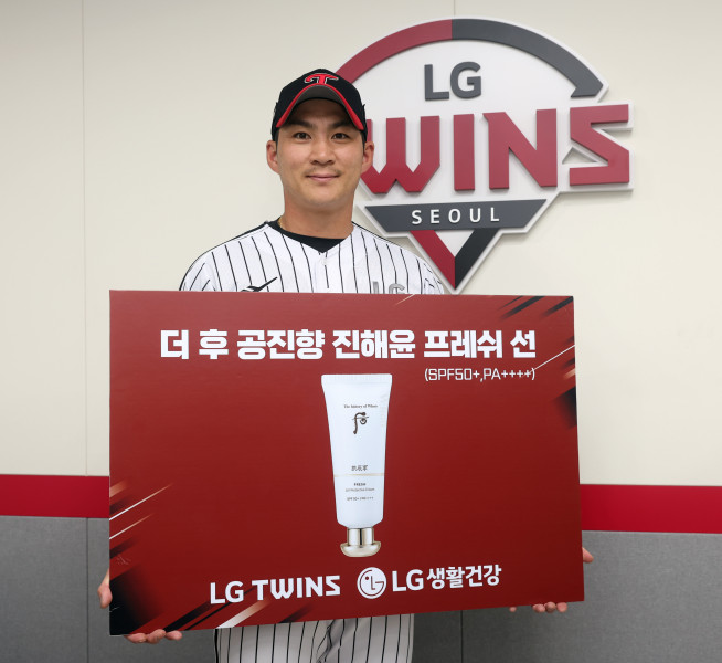 매일 경기를 치르는 LG트윈스 선수들의 경기력 향상과 피부 보호를 위해 LG생활건강이 협찬하는 선크림 ‘공진향 진해윤 프레쉬 선’은 궁중 비방에 한방 진정 성분 함유의 피부 진정 마일드 선크림으로 평소 민감한 피부에도 자극 없이 자외선 차단이 가능하다.