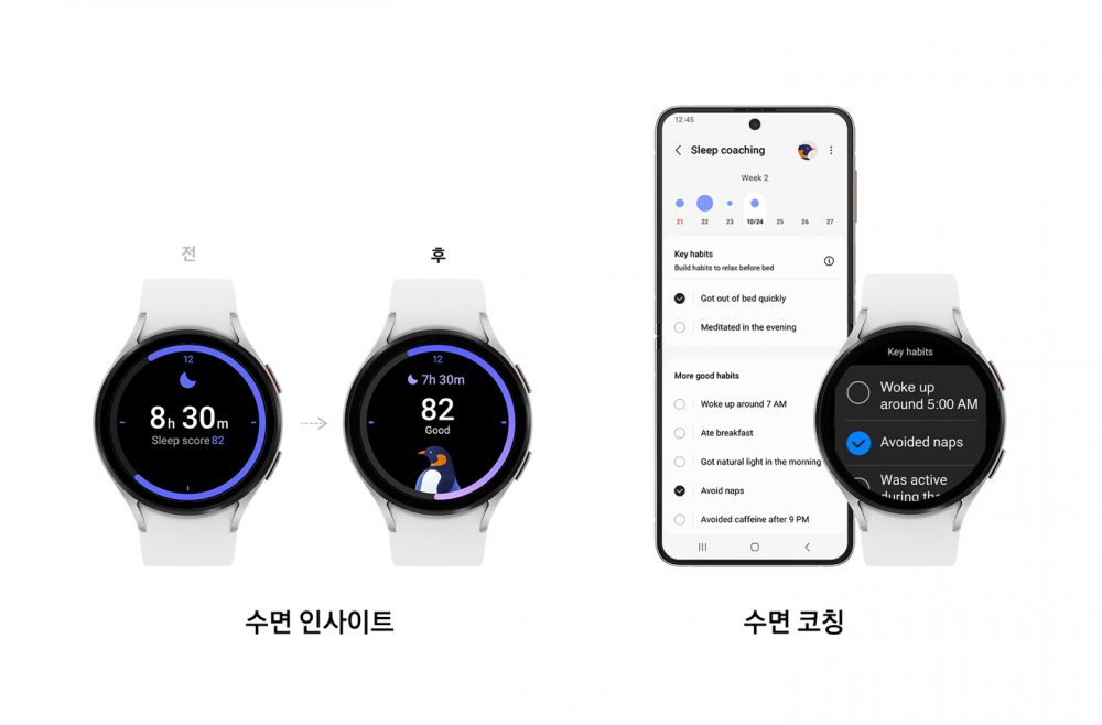 삼성전자는 사용자의 더 나은 수면을 위해 개인 수면 패턴의 이해 , 건강한 습관 형성 , 최적화된 수면 환경 조성을 강조해왔다 . 이를 기반으로 ‘ 원 UI 5 워치 ’ 를 통해 수면 관리 기능을 더욱 강화했다 .