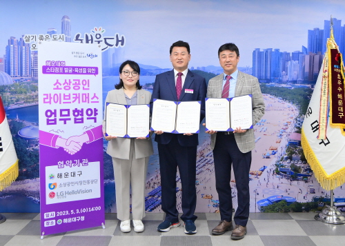 부산 해운대구는 3일 소상공인시장진흥공단, LG헬로비전 부산방송과 '관내 소상공인 스타점포 발굴, 육성 지원을 위한 업무협약'을 체결했다.