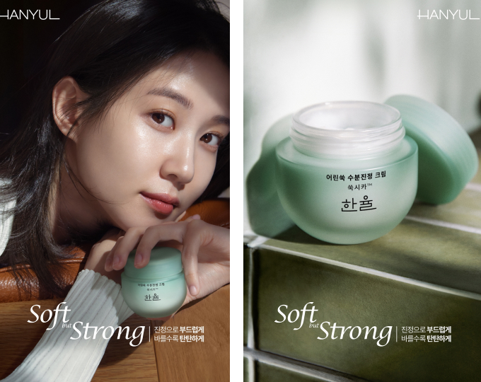 한국의 이로움으로 균형 잡힌 아름다움을 전하는 클린뷰티 브랜드 한율이 어린쑥 수분진정 크림 캠페인, 'Soft but Strong'을 전개한다.