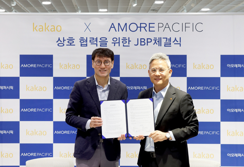 아모레퍼시픽이 카카오와 비즈니스 동반 성장을 위한 업무협약(JBP)을 체결했다.