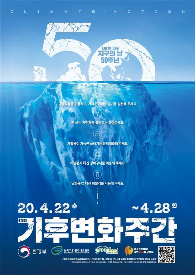 환경부는 50주년을 맞는 '지구의 날'을 기념하여 4월 22일부터 28일까지 제12회 기후변화주간을 운영하고, 생활 속에서 온실가스를 줄이기 위한 다양한 저탄소 실천 활동을 펼친다.