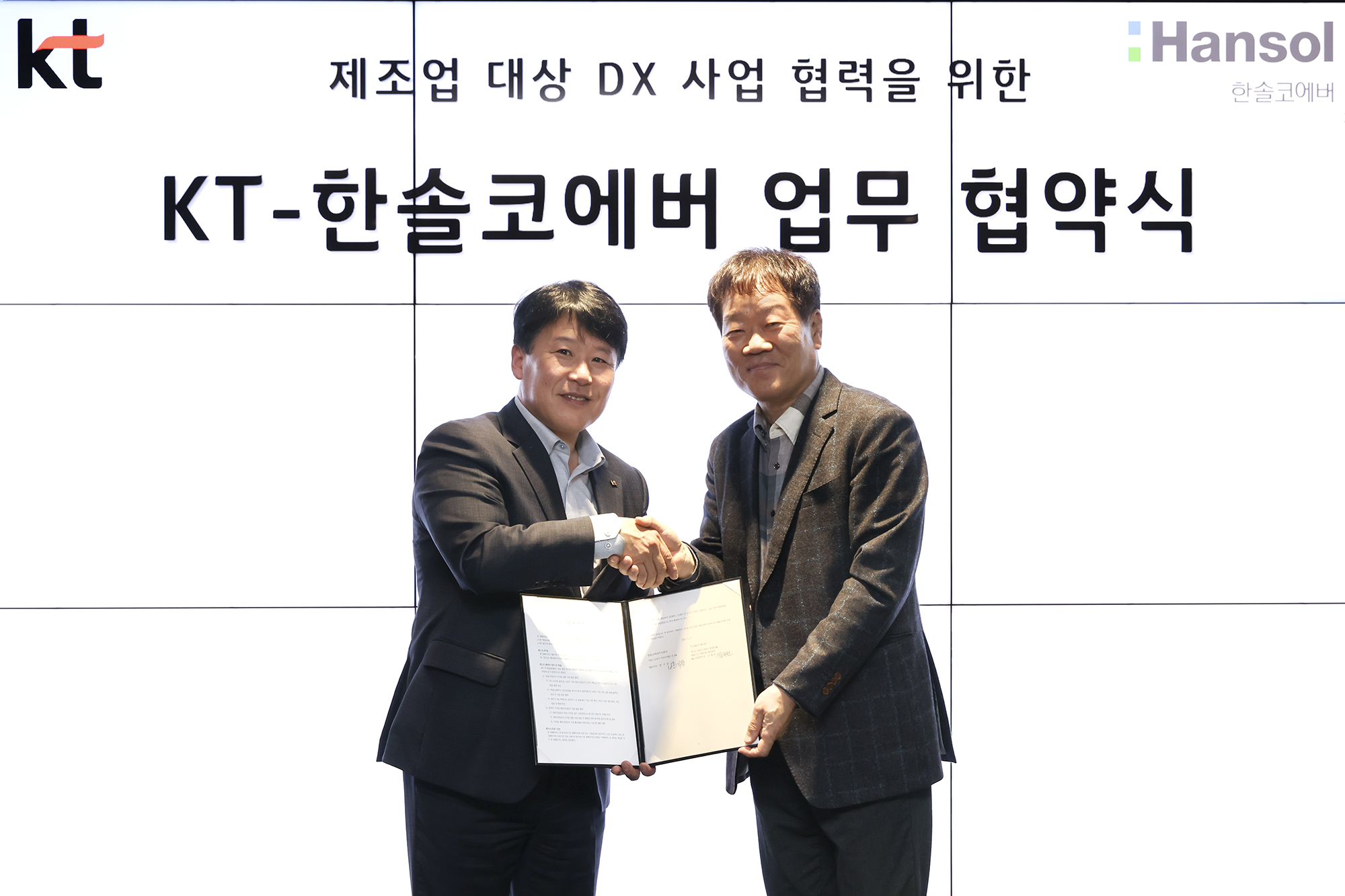 KT(www.kt.com)가 한솔코에버와 제조업 분야의 디지털전환(DX) 사업을 공동 추진한다고 10일 밝혔다. 양사는 지난 9일 송파구 KT 송파빌딩에서 이 같은 내용을 핵심으로 한 양해각서(MOU)를 체결했다.