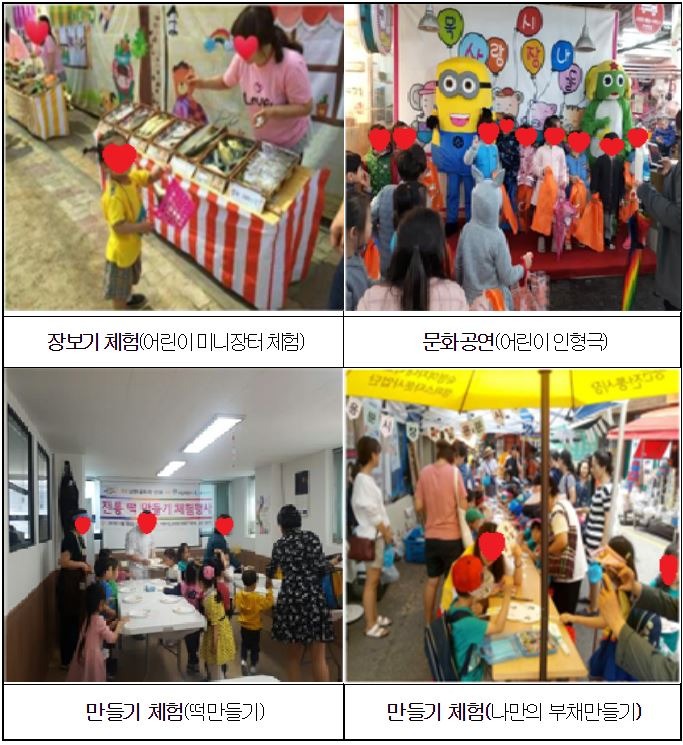 ‘금남시장’(5.24.)에서는 어린이 대상 숟가락 난타 체험, 풍선만들기체험 등을 진행해 어린이들이 시장을 즐겁고 친숙한 공간으로 인식하도록 돕는다. ‘봉리단길 상점가’(5.25.~26.)는 부모님과 자녀가 함께하는 요리교실과 어르신대상 장보기체험 등을 준비했다.