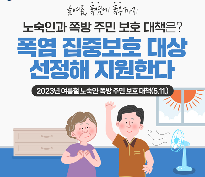 정충현 복지부 복지정책관은 “혹서기에는 주거 여건이 열악한 쪽방촌의 여름나기는 더욱 힘들다”면서 “집중호우나 폭염 등으로 인한 안타까운 인명사고가 발생하지 않도록 모든 관계자들과 함께 힘쓰겠다”고 강조했다.