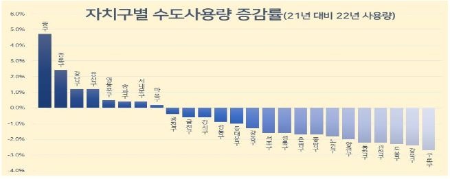 < 자치구별 수돗물 사용량, 증가량 1위는 중구, 감소량 1위는 구로구 >