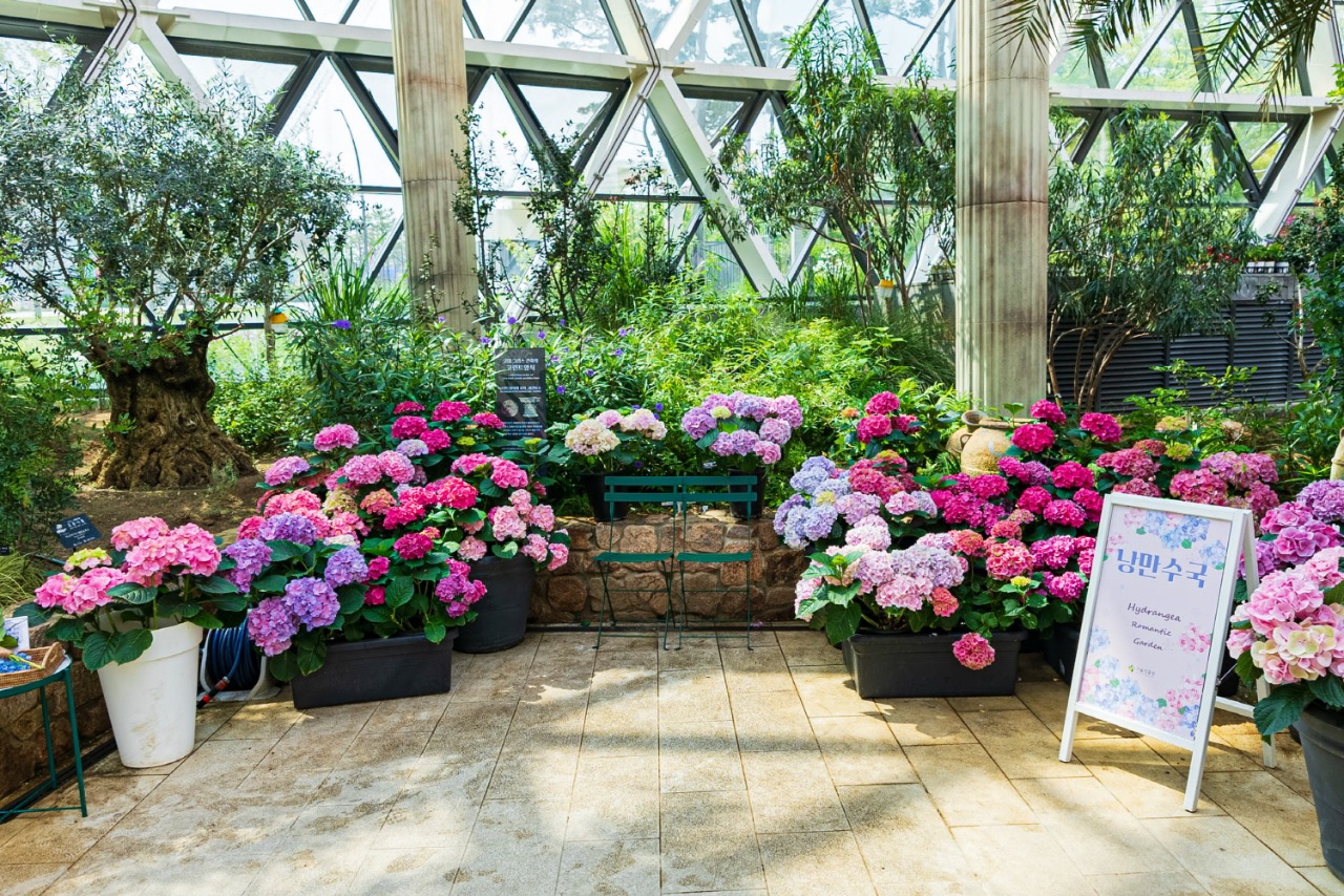 서울식물원에서 올해로 5회째를 맞는 『낭만수국전』은 업무협약기관인 전남농업기술원에서 개발, 재배한 품종이 포함된 수국을 2019년부터 전시해왔다. 올해에는 개발 완료한 새로운 8품종을 포함하여 총 400여 개체로 작년보다 더 풍성한 수국을 만나볼 수 있다.