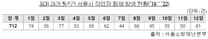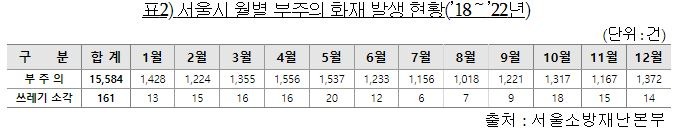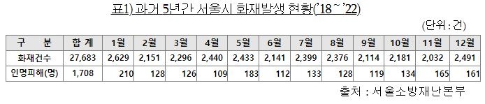 서울시 소방재난본부는 과거 5년(2018~2022년)간 발생한 화재, 재난 및 안전사고 분석을 바탕으로 5월 중 화재 예방 및 안전 관리에 주의를 당부했다.