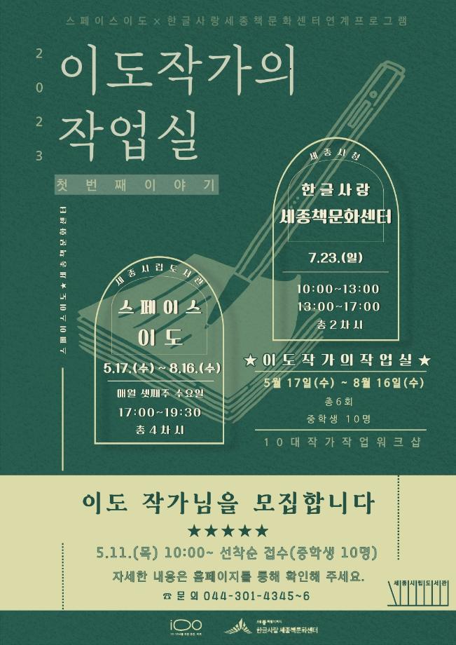 세종시립도서관이 청소년 특화공간 ‘이도’에서 운영하는 ‘이도 작가의 작업실’에 참여할 만14~16세 청소년을 지난 11일부터 선착순 모집에 나섰다.
