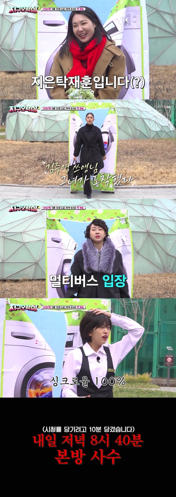 한편, 지난 11일(목) 공개된 1회 선공개 영상에는 드라마 왕국 상암동에 지구 용사 이은지, 미미, 이영지, 안유진이 각각 ‘도깨비’ 지은탁, ‘SKY 캐슬’ 김주영, ‘꽃보다 남자’ 구준표, ‘커피프린스 1호점’ 고은찬으로 변신하고 나타났다. 더불어 네 사람의 유쾌한 케미를 확인할 수 있어 관심을 모았다.