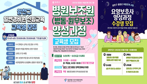양천구는 은퇴 후에도 활발한 사회활동을 희망하는 중장년을 대상으로 경비원, 요양보호사 등 다양한 취업연계형 무료 직업교육 프로그램을 운영하고 참여할 수강생을 모집한다고 밝혔다.