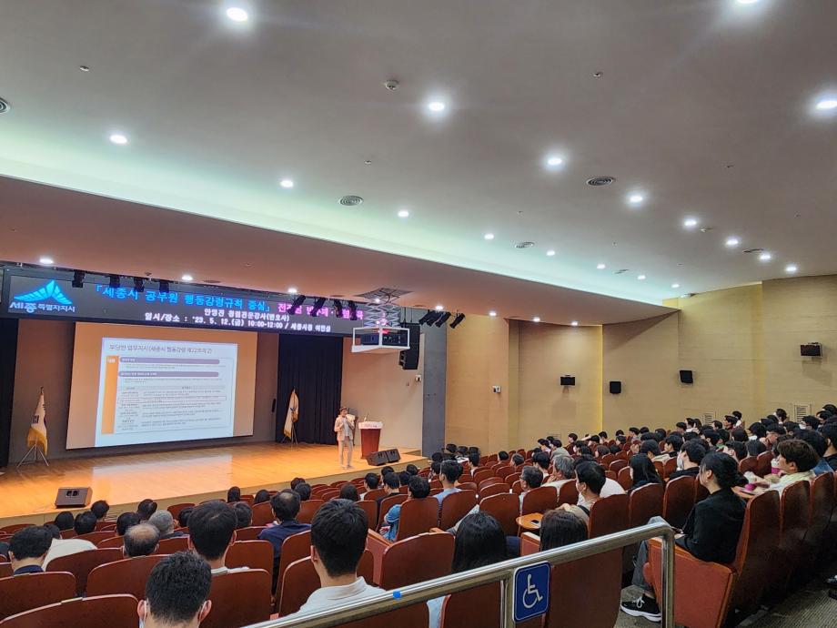 교육에서는 ‘세종시 공무원 행동강령 규칙’에서 정한 ‘사적 노무 요구 금지’, ‘직무권한 등을 행사한 부당 행위의 금지’, ‘감독기관의 부당한 요구 금지’ 등 갑질 금지 조항을 살피고 사례별 설명으로 이해도를 높였다.