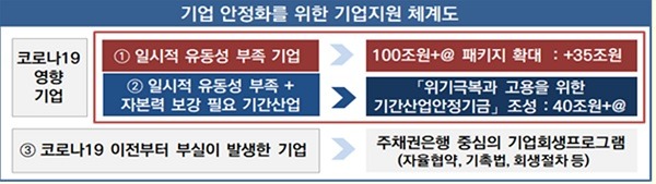 또 코로나19로 고사 위기에 놓인 항공·해운·자동차·전력 등 기간산업 중심으로 40조원 규모의 안정기금도 조성하기로 했다.