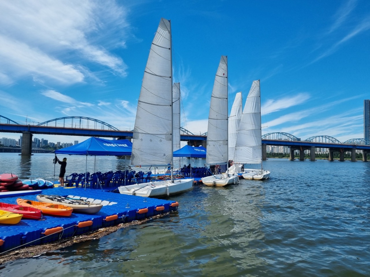 바람을 활용해 움직이는 크루저 요트, 보드 위에 선 채 노를 저어 이동하는 스탠드업 패들보드, 배에 발을 뻗고 앉아 노를 저으며 움직이는 카약 등 강 가운데서 바람을 느끼며 한강의 아름다운 경치를 구경할 수 있는 다양한 체험 종목이 준비되어 있다.